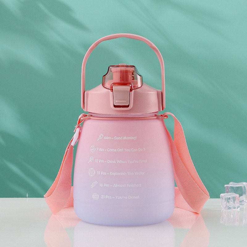 Home > 1300ml Motivational Water Bottle with Time Marker; Shoulder Strap & Straw - Perfect for School; Sports; Camping - 44oz Cute Design for Girls & Kids