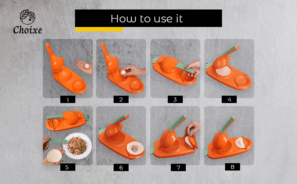 Multi-Purpose. A versatile kitchen tool to make a variety of favorites; from Chinese dumplings; empanadas; pierogies; pot stickers; ravioli; pastries; and more.Efficient and fun. This manual dough presser and wrapper will save you time and deliver perfect; stylish; mini-sized handmade food for family and friends.Easy-to-use. Put the dough on the dumpling maker set; pull down the handle and press the dumpling/empanada wrapper. Add your favorite fillings on the dumpling skin; then close the pressing mold to get a perfect piece.Ergonomic Design. The handle has a non-slip design; and the handle and bottom maintain a perfect distance to efficiently prevent your fingers from being pinched.Convenient storage. A hanging hole for easy storage. It will only occupy a little space.Dimensions: 11 in x 5 in x 3 inWeight: 7.7 ozMaterial: Food-grade ABS