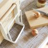 2.The chopping board stand's powder-coated steel makes it sturdy and corrosion-resistant, while the wooden dowel adds a warm accent.