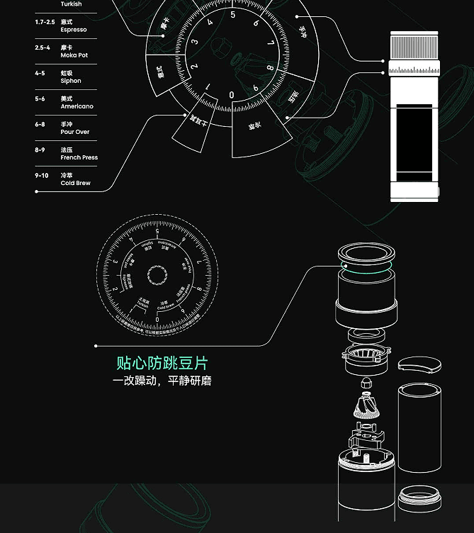 24 gear adjusted powder eye coffee powder capacity 30g multi-functional domestic / commercial kitchen grinding