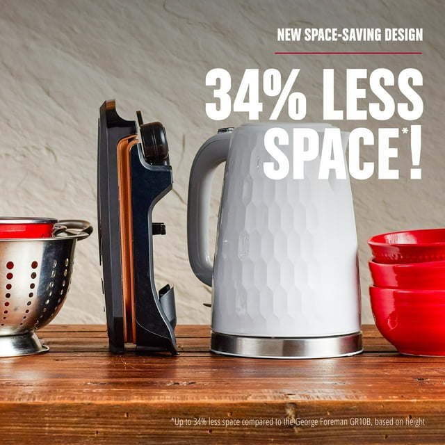 New Compact Design* - Tight on countertop space? With a low profile and vertical storage capabilities, it's simple to fit the grill in small spaces on your countertop or in the cupboard.