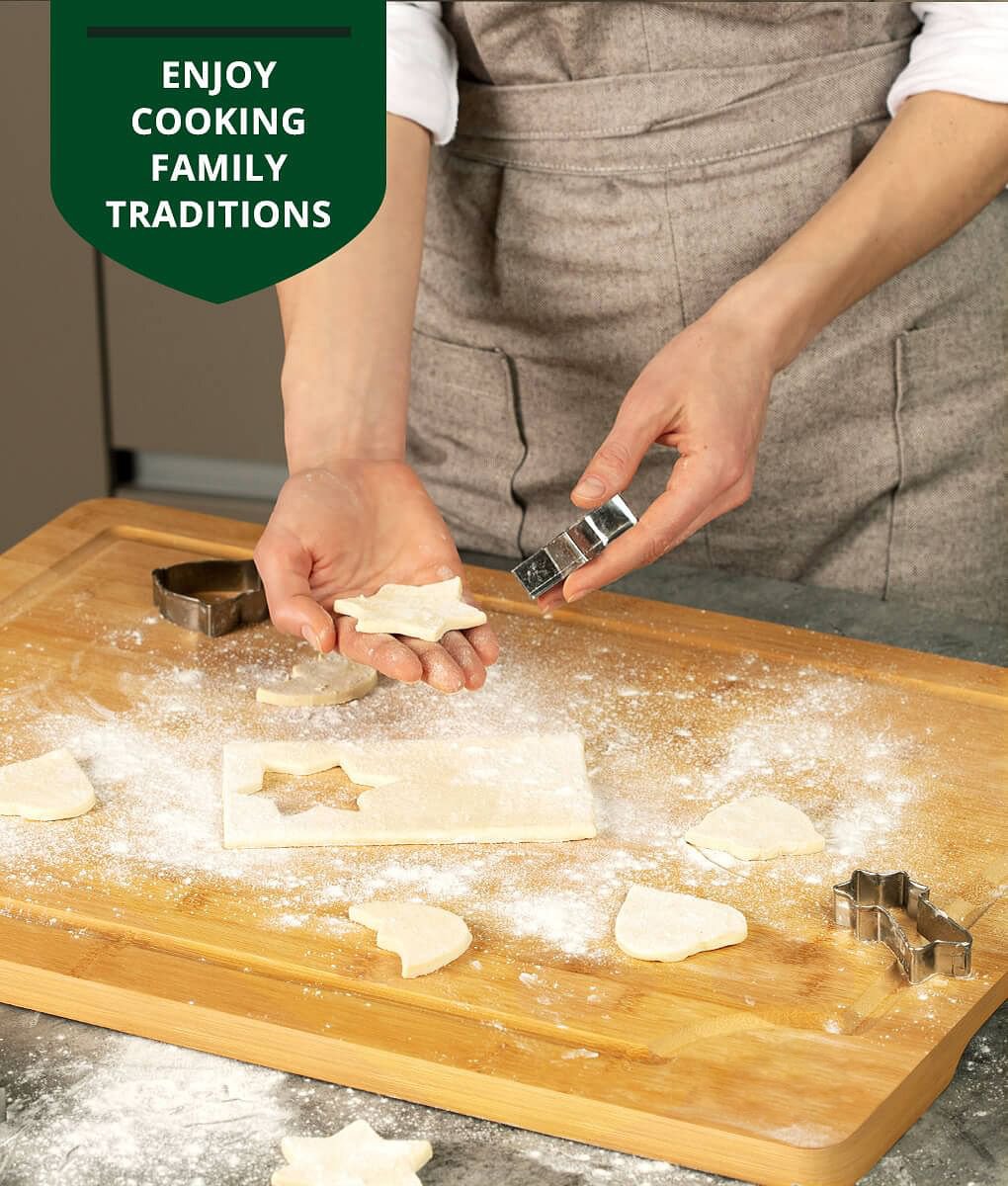 3.This tray enables a range of heavy-duty meal prep functions. Count on the juice grooves to collect all the liquids, stop spills, and prevent cross-contamination of any foods. Great for cooking and baking as its wide face lets you roll out the dough like a Masterchef.