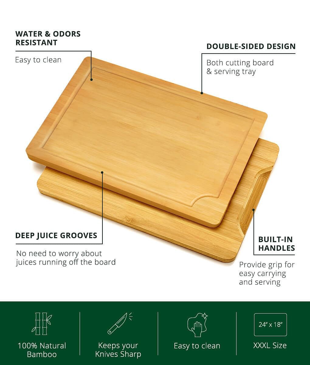 A holiday must-have that’s great for Thanksgiving get-togethers; summer picnics; family events; and more. Truly; an extra large cutting board with juice groove for every kitchen task. This platter will make your cheese presentable alongside your favorite fruits; meats; and delis so that you can host like a pro!