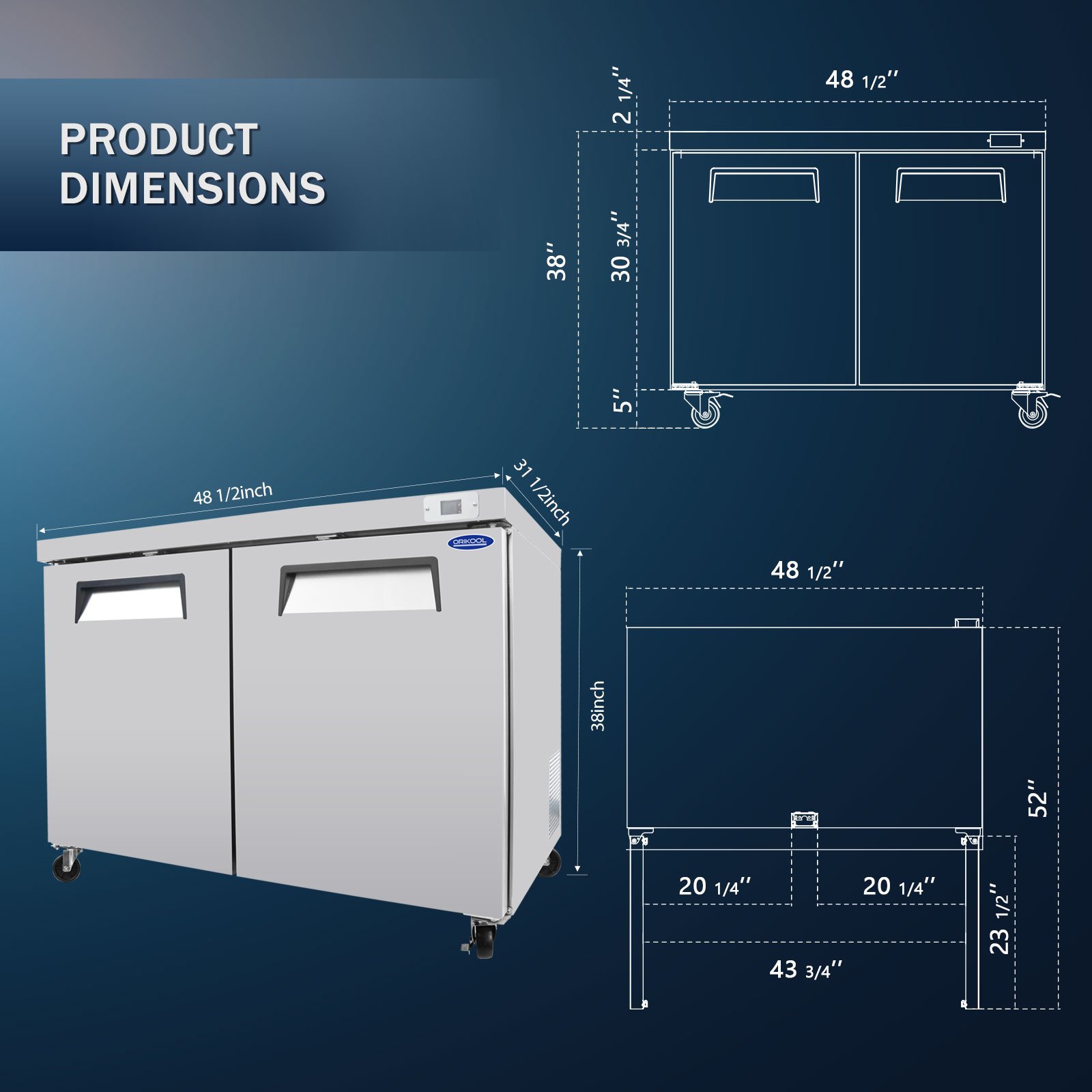 Home > ORIKOOL 48" Commercial Under Counter Freezer 2 Door 14.1 Cu.ft Undercounter Work Top Freezers ETL Approved