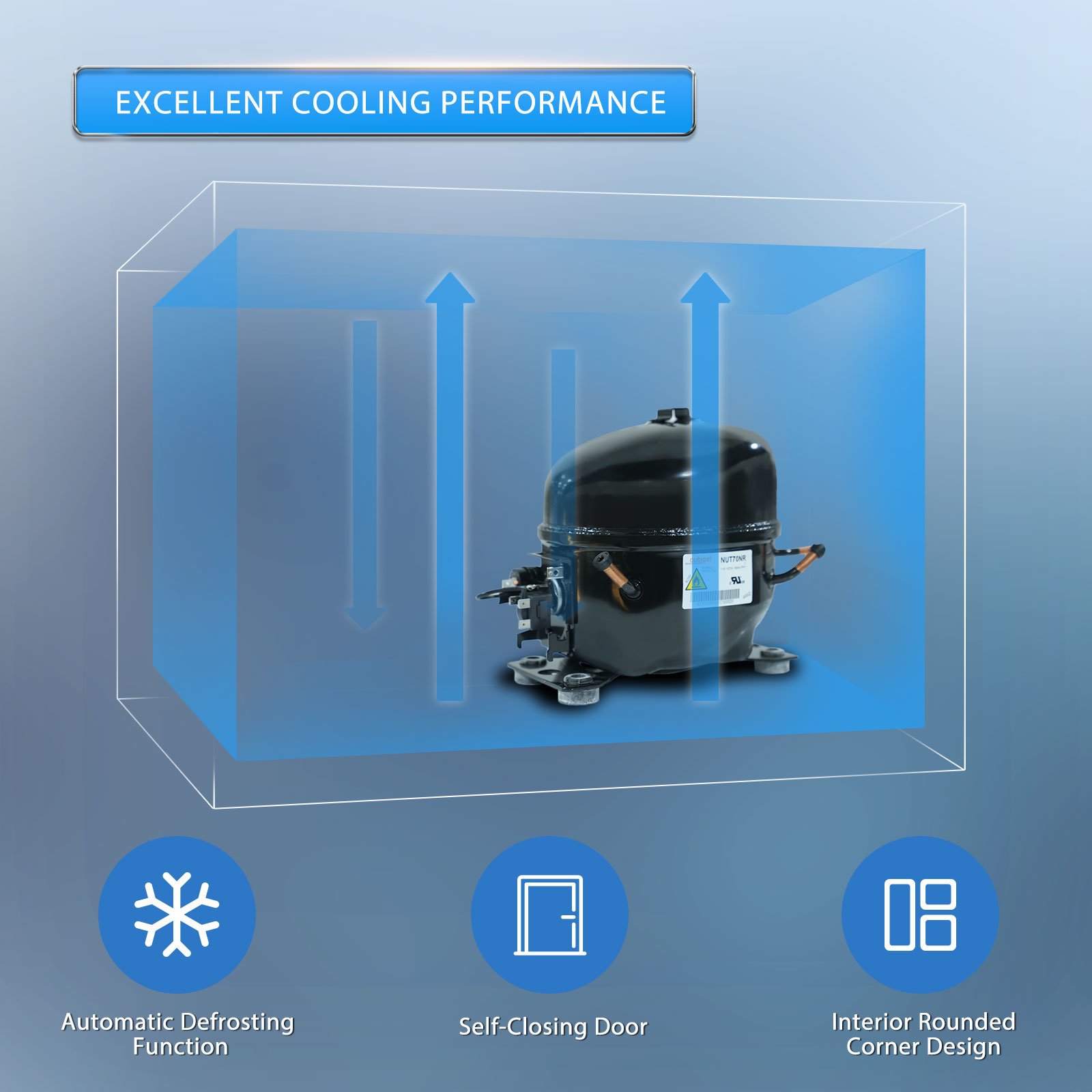 Advanced Defrost System: Automatic defrost function and heated door frame prevent frost buildup, ensuring consistent cooling performance.