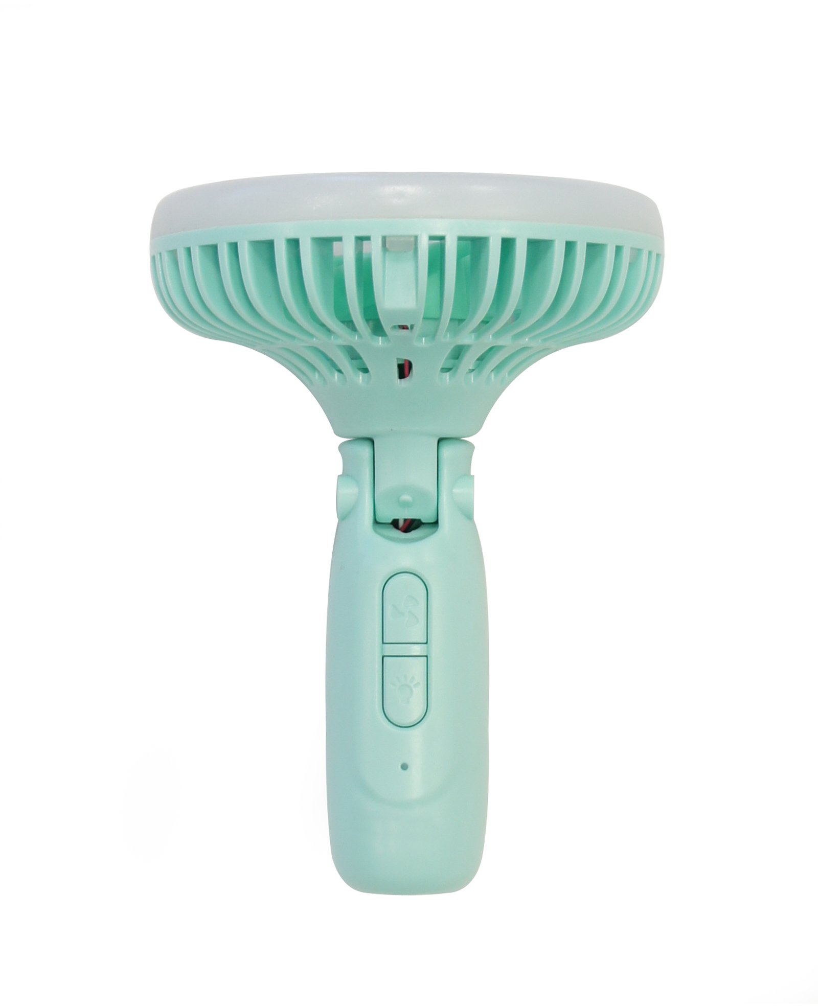 This stylish and modern compact hand held fan is perfect for any setting. Its versatility will help to help keep you cool no matter what activities you are doing. If you are out on the golf course, shopping at an outdoor market, at a ball game, or simply sitting at home, this little device will keep you cool! It is light weight and compact so it can travel with you anywhere you go! Features and Functions – Refreshingly powerful – LED light for easy use at night – Protective shroud to keep fan blade from damaged – Rechargeable battery (Li-ion 18650 1500mAH). Long battery life: Low 6~7 hrs (no LED), High 2.5~3 hrs (No LED), Low 5.5~6 hrs (w/LED), High 2~2.5 hrs (w/LED) – Press button on/off switches – 5.8 CFM – Includes a USB charge cord – Fan color: Green Charging the battery 1. Connect this fan to your USB port in your laptop or desktop to charge or use USB wall charger to charge. 2. When plugged in, Red Light means the battery is charging. 3. Disconnect it from the USB port to turn on the fan. NOTE: Fan CANNOT be powered on while it is plugged in. Specifications Fully Extended Dimensions 4.75″ x 4.75″ x 6.38″ Folded Dimensions 4.75″ W x 3.75″ D x 6″ H Unit weight per unit 0.49 lb Shipping Dimension 8″ x 5.5″ x 5.5″ Shipping weight 1 lb