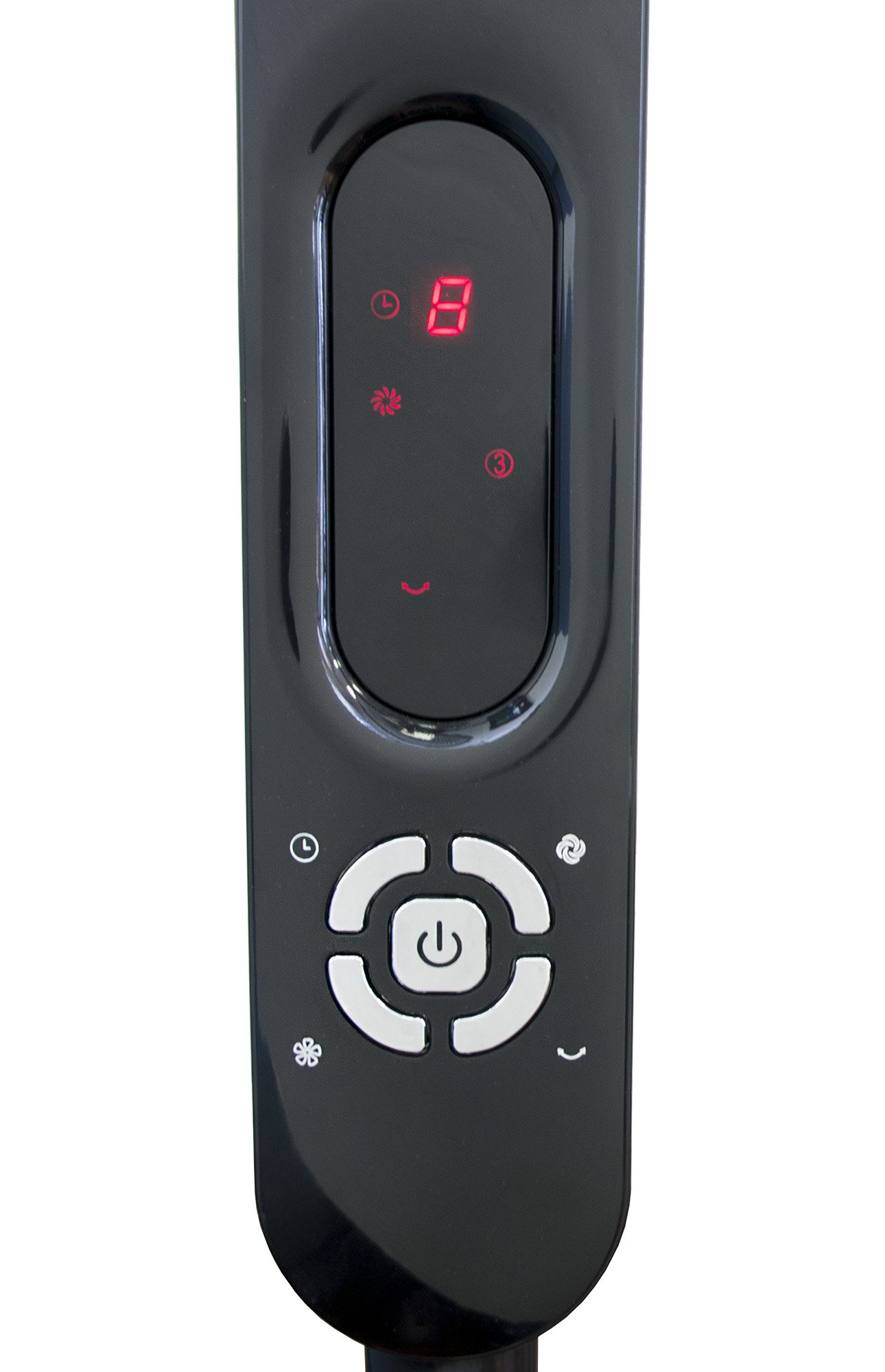 16″ stand fan offers innovative Touch-Stop Sensor. This safety feature is designed to protect children – fan will stop when the fan guard is touched. Features 6 fan speeds and 4 wind modes (normal, natural, sleep and smart). Oscillating feature better distributes the air. Easy to assemble, operate and maintain. Features and Functions – 16″ fan blade – Touch-stop sensor – 6 fan speeds – 4 modes: Normal, Natural, Sleep and Smart – Remote control – Timer-off function (up to 8 hrs) – Head oscillation and manual tilting – Powerful air delivery – Adjustable head angle – Adjustable height – Assembly required – ETL Specifications Input/Output voltage 120V /60Hz Power consumption (high) 0.5A CFM (High) 47:m³/min RPM (speed 1 to 6) 450/550/600/700/800/1000 (±150) Noise level (min/max) 35 / 67 Adjustable head angel up 16° / down 8° (±2° ) Adjustable height 49.21 to 57.09 in. Air Velocity (max) 160 m/min Base diameter 16 in. Power cord length 6 ft Package dimension 25 x 24 x 7 in. Unit weight 15.98 lbs Shipping weight 21 lbs