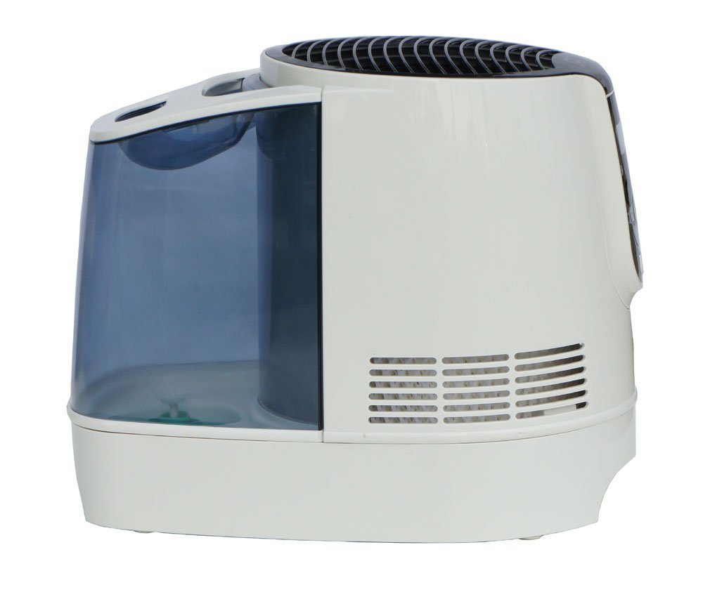 Enjoy a comfortable living space with this cool-air evaporative humidifier. This technology is effective and low-maintenance: unit draws dry air in and it is passed through a moisture-laden wick filter (which retains the minerals and deposits in the water), then pushes and circulates the moist air throughout the room. Digital humidistat for precise humidity control or set to continuous for maximum humidification. Easy to use controls with LCD panel, timer and a large 1-gallon tank. Wick filter is constructed of advanced anti-bacterial wood slurry material. The honeycomb structure absorbs water quickly and allows the water to be easily evaportated into the air. Features and Functions – Evaporative humidification with air circulation draws dry air in and pushes moist cool air back into the room – Digital humidistat (35% to 85%) or continuous operation – Filter captures minerals and deposit – no white dust – LCD panel with filter dirtiness indicator – 1 gallon (3.7 liters) water tank – 2 fan speeds – 1 to 10 hours timer – ETL