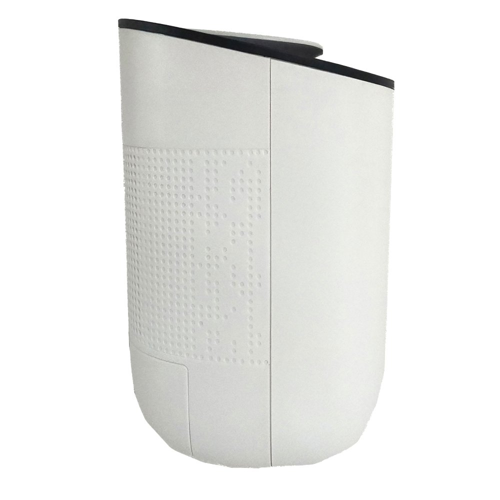 This stylish and modern mini dehumidifier uses Peltier (Thermo-Electric) technology to keep your space dry and comfortable. The compact size is ideal for nurseries, small bedroom, closets and other poorly ventilated areas. Benefits – No compressor – Quiet operation – No vibration – No refrigerant Ideal For – Nurseries – Small bedrooms – Closets, wardrobes and cupboards – Poorly ventilated areas Features and Functions – 600 ML Water Tank Capacity – Compact design – Power and Full tank indicator lights – Auto shut-off when tank is full or removed – Easy to clean Measuring conditions is based on factory testing conditions. Room Temp: 86°F, Room Humidity: 80%. The dehumidification rate is best when ambient temperature is 86F and humidity is 80% RH. At constant temperature(86F), if the humidity drops, dehumidify rate will decrease as well. When the temperature is below 59F, the dehumidify rate is nearly zero as the absolute Humidity is too low, regardless of Relative Humidity. Specifications Moisture removal (per day) 300 ml (10.15 oz) Water tank capacity 600 ml Power supply 9V AC/DC 2.5A Power consumption 23 W Applicable area up to 130 sq. ft. Noise Level 46 db Applicable Ambient Temp 5-50°C/41-122°F Air Volume (CFM) 10.8 Unit dimension (W x D x H) 5.75 x 5.75 x 8.94 in. Net weight (w/o adapter) 1.9 lbs Gross weight 2.65 lbs