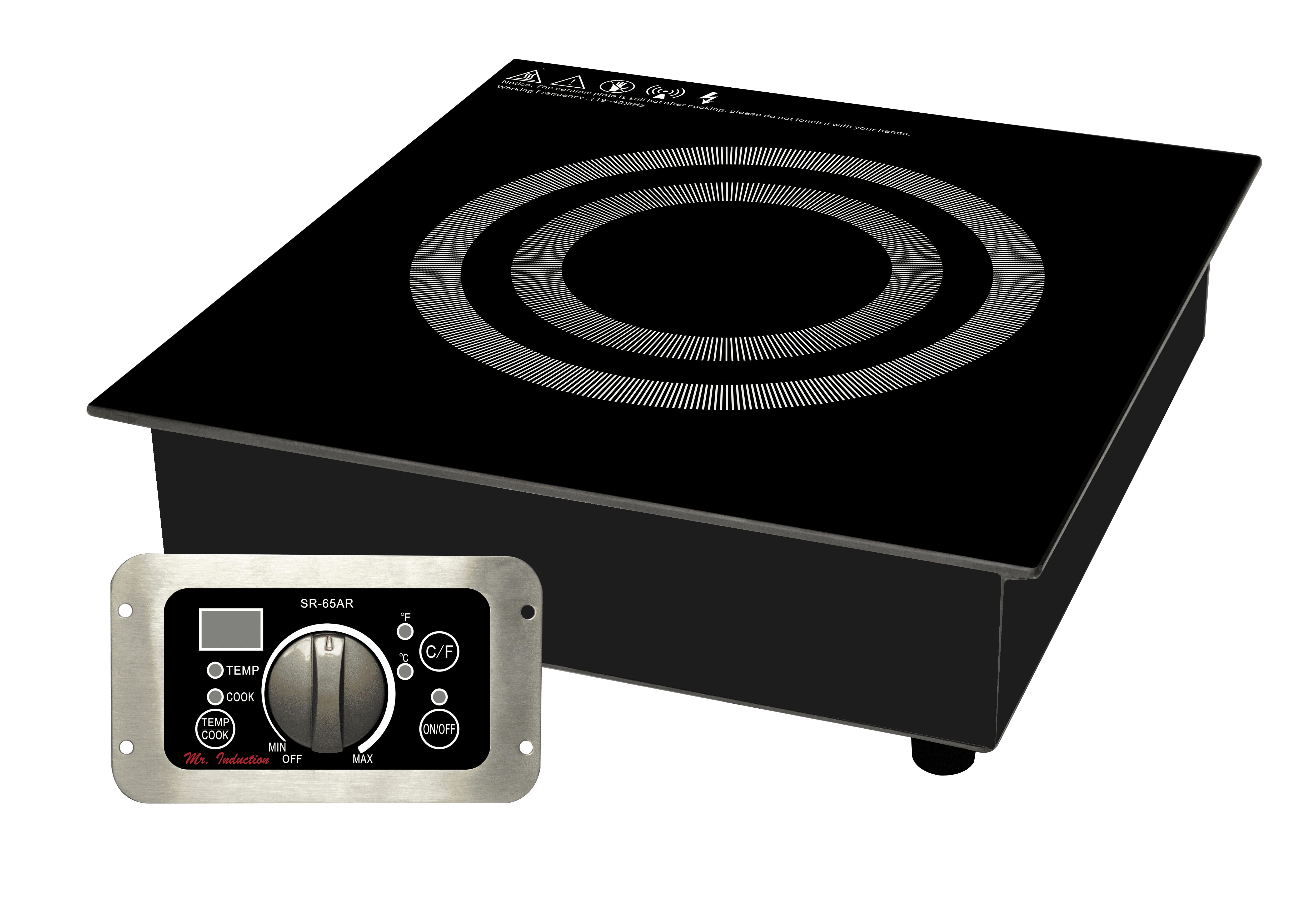 Customize your food service facility with the most advanced commercial induction equipment available. Designed to keep food warm for long periods of time. Features two power levels and 20 hold temperatures. Separate control for remote mounting. Features: · Built-in or countertop application · SmartScan® technology: voltage, pan size and type recognition · 5mm thick tempered glass cooktop · Two heating powers: 650W and 1000W · 20 hold temperature settings: 90°F to 440°F · Large LED display · Displays in °F or °C · Simple knob-set thermostat control · Touch-sensitive control box with stainless steel frame · Power ON/OFF touch pad with indicator light · Over or under voltage protection · FCC / CETL / ETL-Sanitation to NSF-4 Construction: · Built-in range with installation-ready modular flanged base · Separate control panel with 40″ cable for easy front mounting · 100% silicon rubber protective top seal · 6′ power cord length Specifications Input voltage 110-120V / 60Hz Phase 1 Power consumption 1000W / 15A Plug NEMA 5-15P Receptacle NEMA 5-15R Temperature range 90 – 440°F Cord length 4.4 ft Unit dimension (W x D x H) 12.56 x 13.38 x 3.94 in. Package dimension (W x D x H) 18 x 22 x 6.75 in. Net weight 12.79 lbs Gross weight 15 lbs