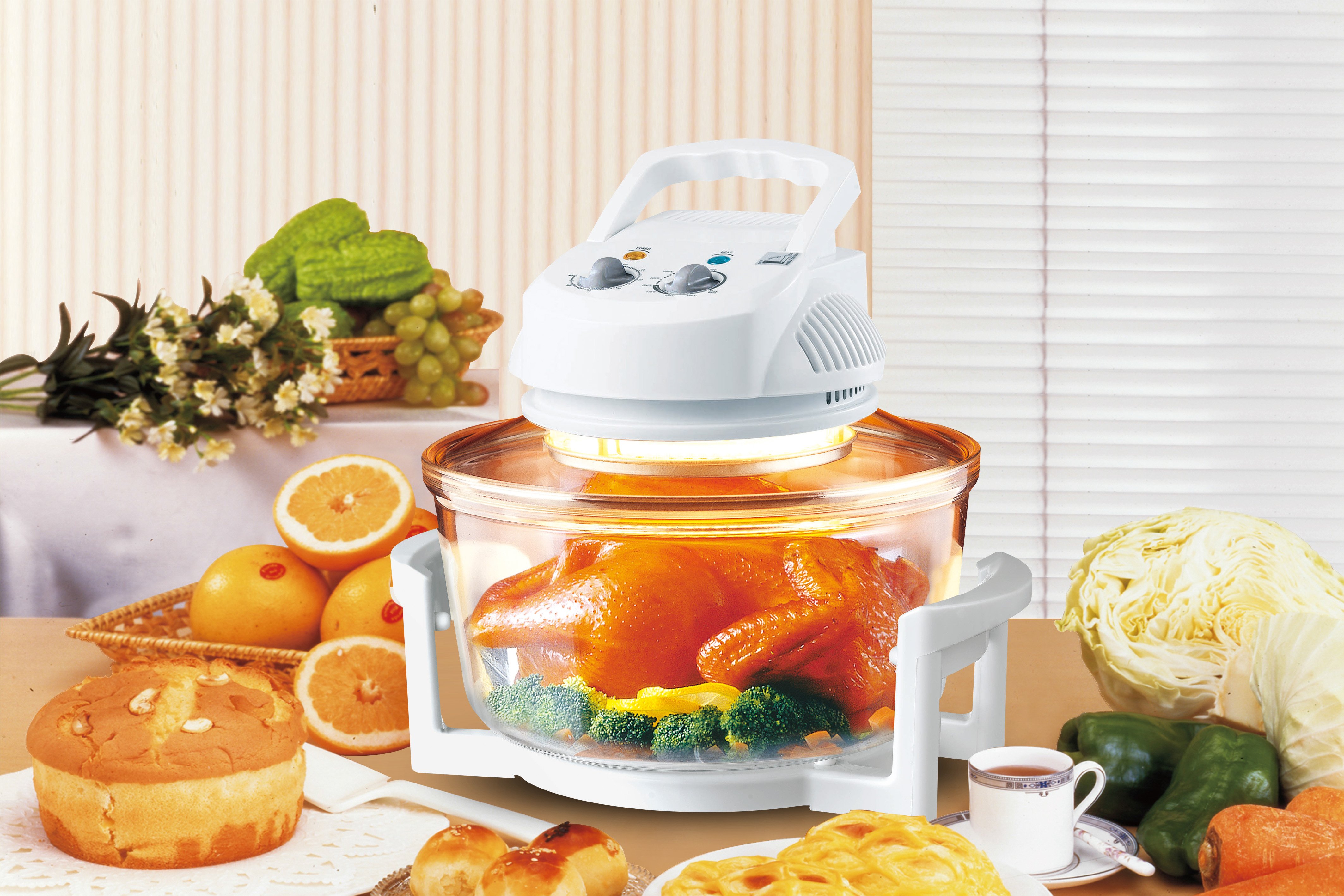 Multi-purpose convection oven can be used to bake, grill, roast or steam – all in less time. Preserves nutrients and keeps meats tender. Circulates fan-forced heated air over surfaces evenly and maintains even temperature. High temperature safety glass bowl.