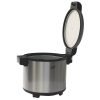 This super large, heavy-duty rice warmer with stainless steel body is ideal for restaurant use. (It’s not a rice cooker.) With it’s sleek design and large capacity, it is ideal for any restaurant looking to keep rice warm and fluffy for their customers! Able to keep rice warm for up to 48 hours. Inner pot made with Crystalline Teflex Non-Stick Coating for easy cleaning.