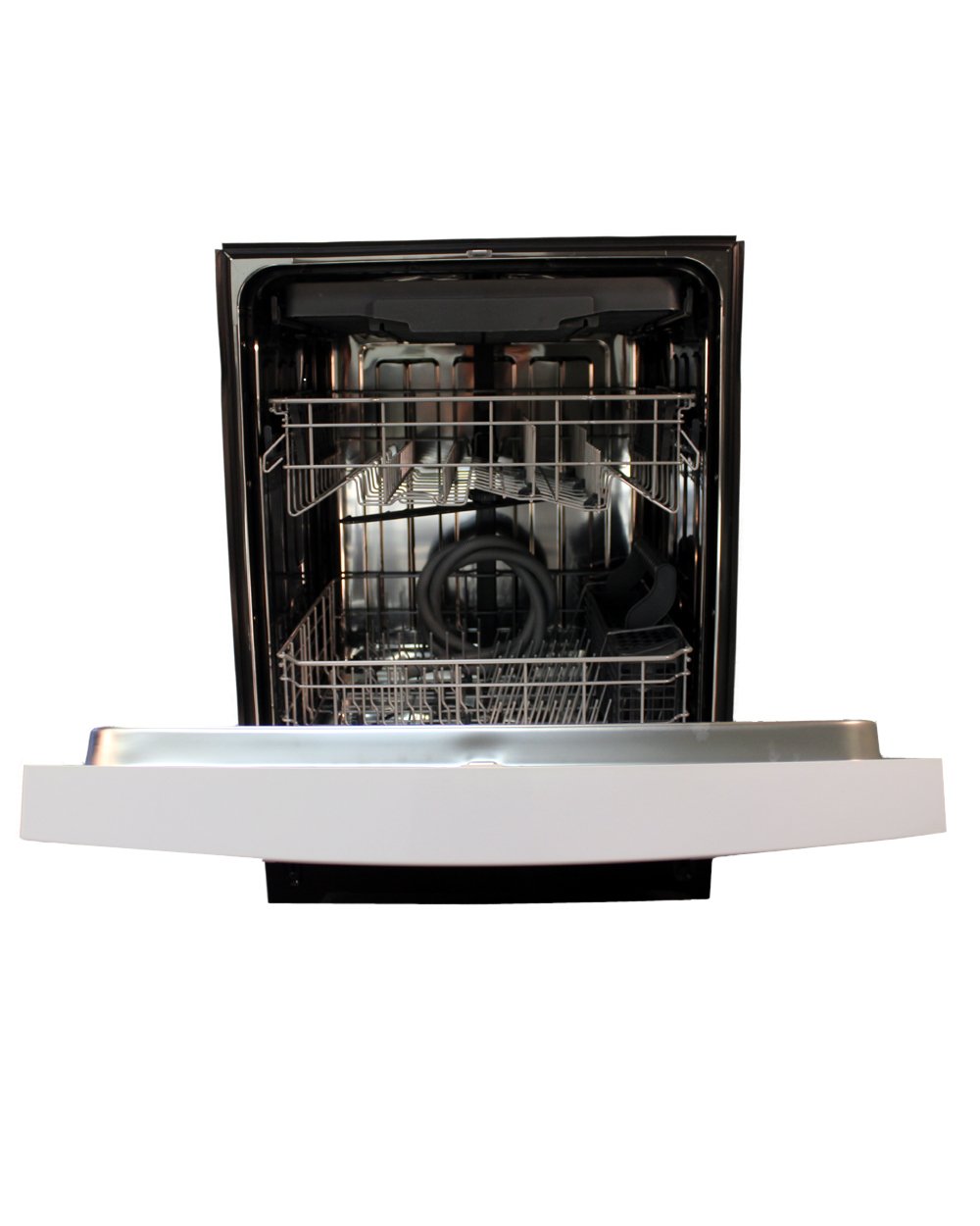 This sleek and modern built-in 14 place setting dishwasher is a great addition to any kitchen. At 24 inches wide, this large capacity unit can handle even the larger household dish-washing needs. Features 2 pull out dish racks, a 6 wash programs and time delay feature. New to this model is an active heated drying function that provides exceptional dish drying capability. This unit has a special top cutlery rack which prevents fine utensils that might potentially fall through the normal silverware basket. Unlike most other 24″ models on the market, this unit has a stainless steel interior tub for unmatched durability.