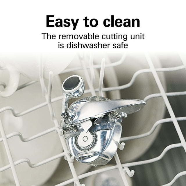 Product details INCLUDES OPENMATE™ MULTI-TOOL:The tool opens bottle tops, hard plastic packages and pop-top cans. It stores neatly on the back of the electric can opener, so you never have to search for it. EASY TO CLEAN:The removable cutting unit makes cleanup simple — you can rinse it clean under the faucet and it's dishwasher safe. #1 BRAND IN CAN OPENERS IN THE U.S.*:Consumers love Hamilton Beach can openers — we are the best-selling can opener brand in America. EASY HANDS-FREE OPERATION:Just align the can and press the lever. The can opener opens the can and then shuts off automatically, freeing your hands for other kitchen tasks.Color